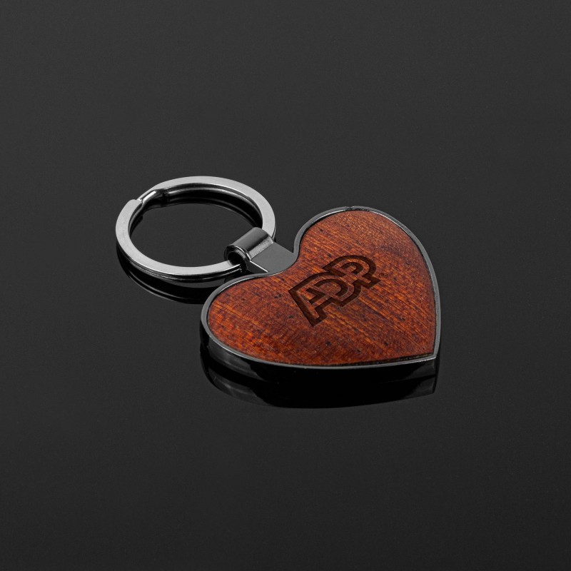 You’ll “love” our latest key chain, a combination of rich, natural wood and gunmetal construction.