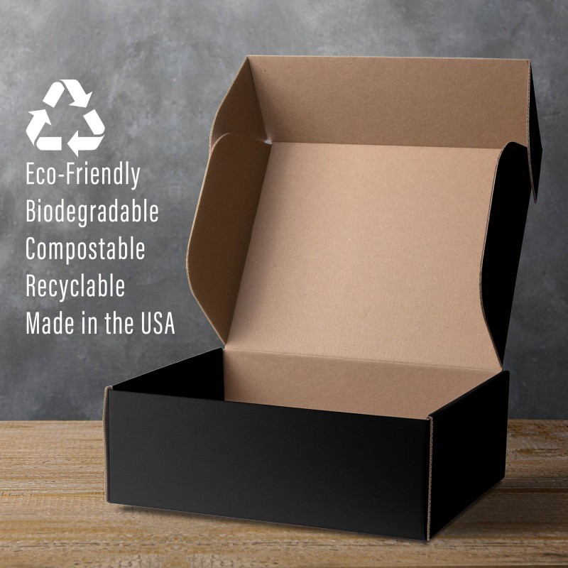 Screen Printed Corrugated Box Large 11x9x4 For Mailers, Gifting And Kits (Black Box Print, 1/0, Matte)