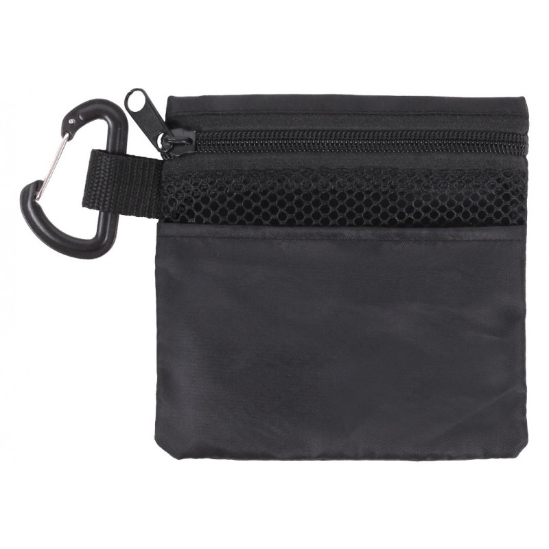 This nylon & mesh zippered pouch is great for carrying your cooling towel plus other small accessories in the extra front pocket. Comes with convenient carabiner clip.