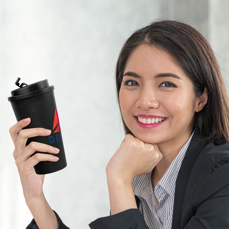 A fantastic way to promote sustainability, this coffee mug reduces plastic use by infusing eco-friendly wheat straw, which is renewable and sustainable.