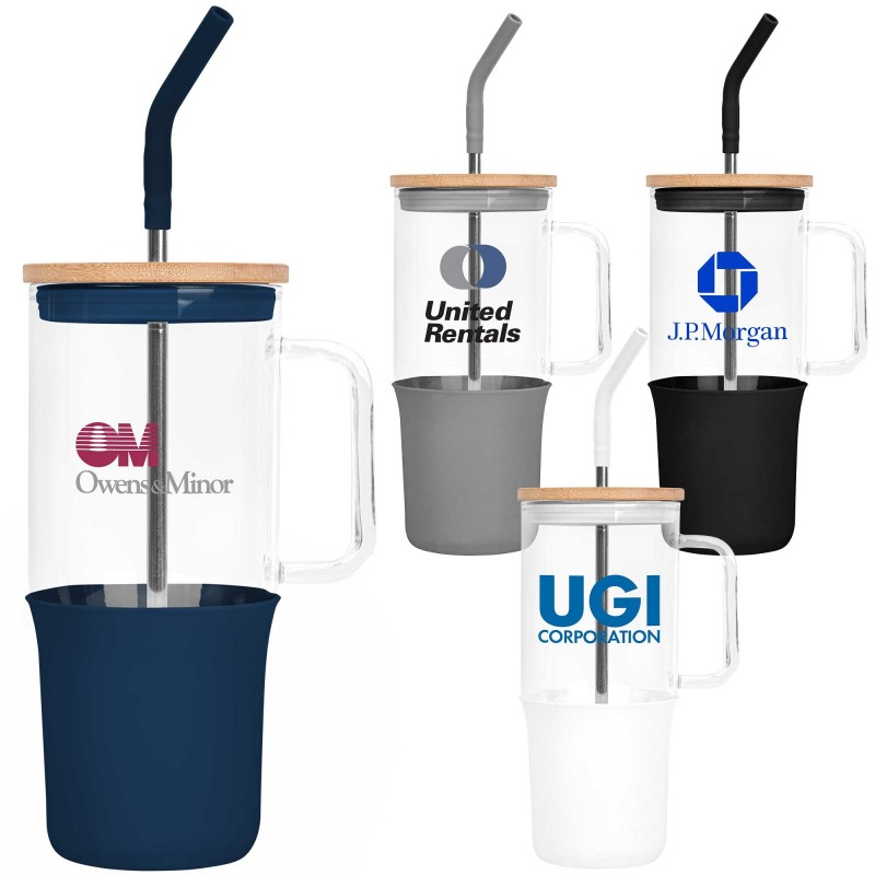 32oz. Glass Tumbler with Handle and Straw