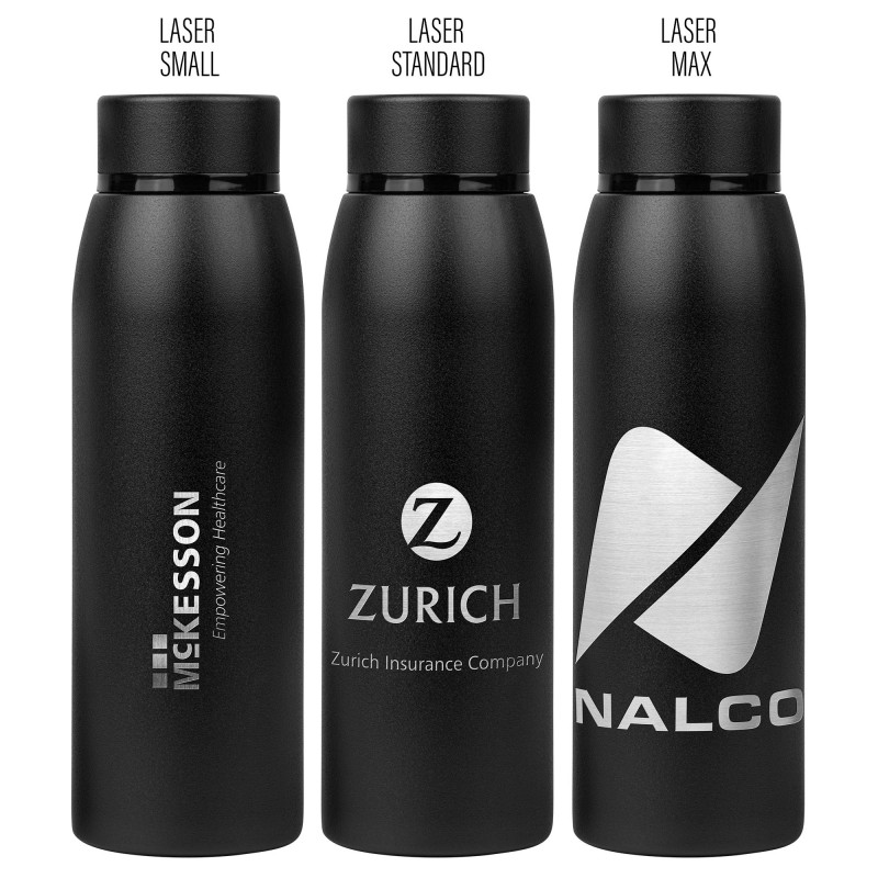 • Laser engraving on anodized or plated items appear on actual item as tone on tone normally, but can and does at times appear slightly bronze due to the differences in materials and variations in the thickness of the plating on some items. Laser engraving uses the laser to etch through the surface so it cannot be controlled exactly the same on each item. On a proof, laser engraving is most often shown in gray color. Imprint will shift slightly when printed or lasered.