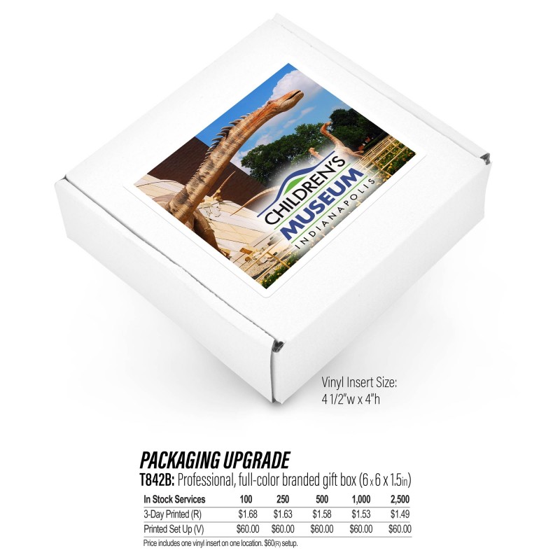 • PACKAGING UPGRADE: Optional full-color vinyl insert imprinted box