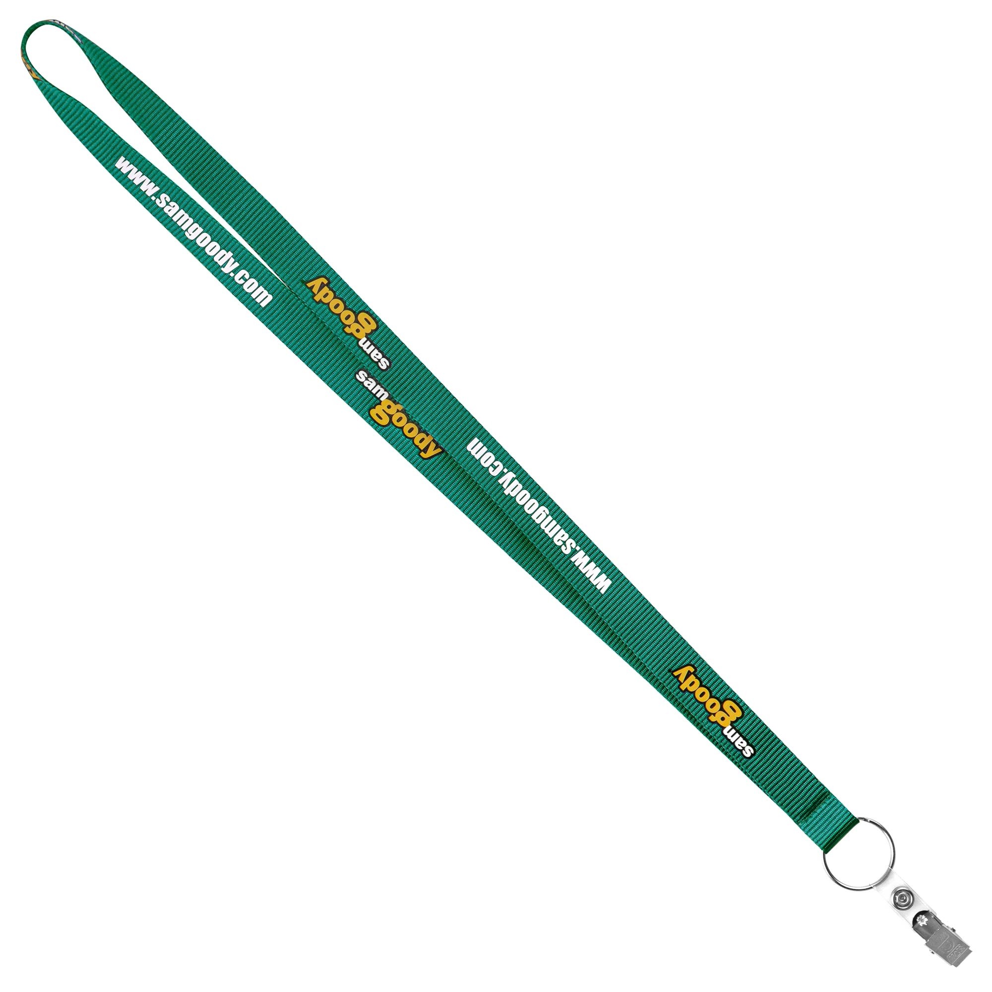 • A 3/4" wide x 18" long recycled PET material lanyard with one of 10 different free attachments.