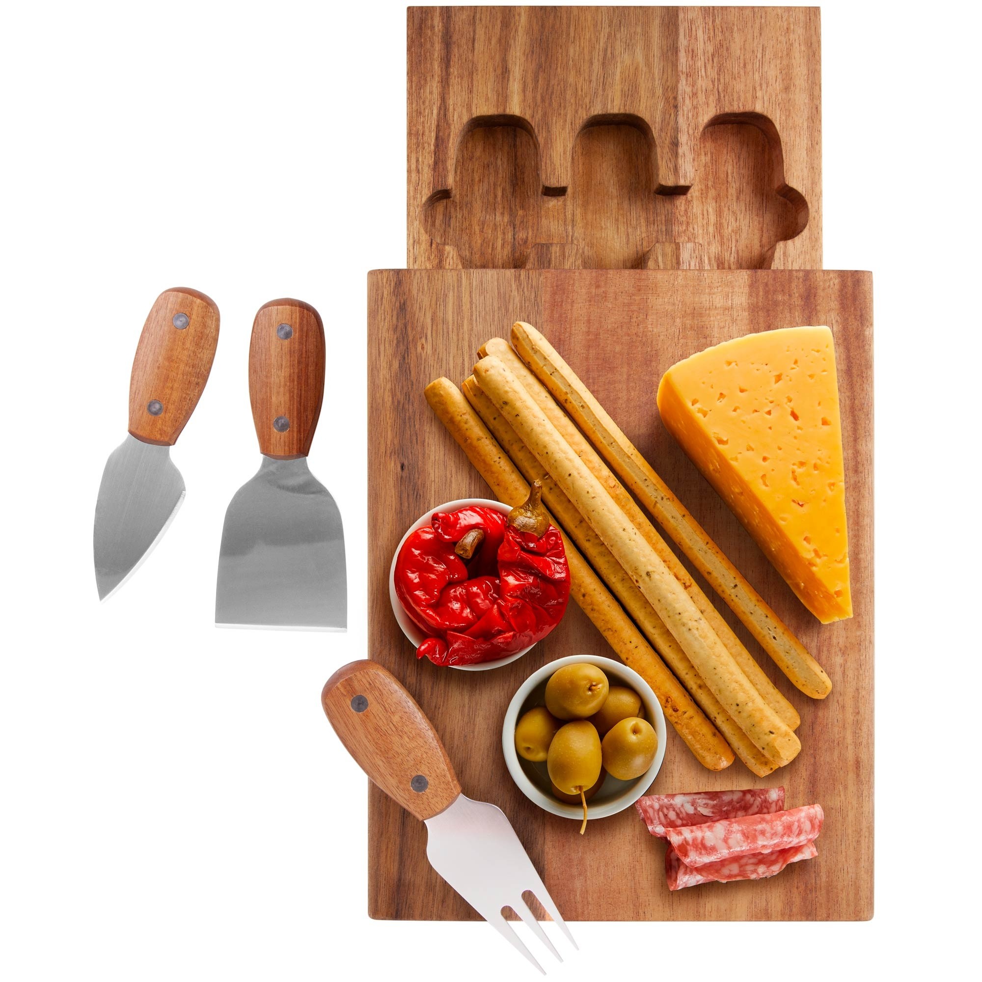 • The fork & knife are fashioned of acacia wood & stainless steel.