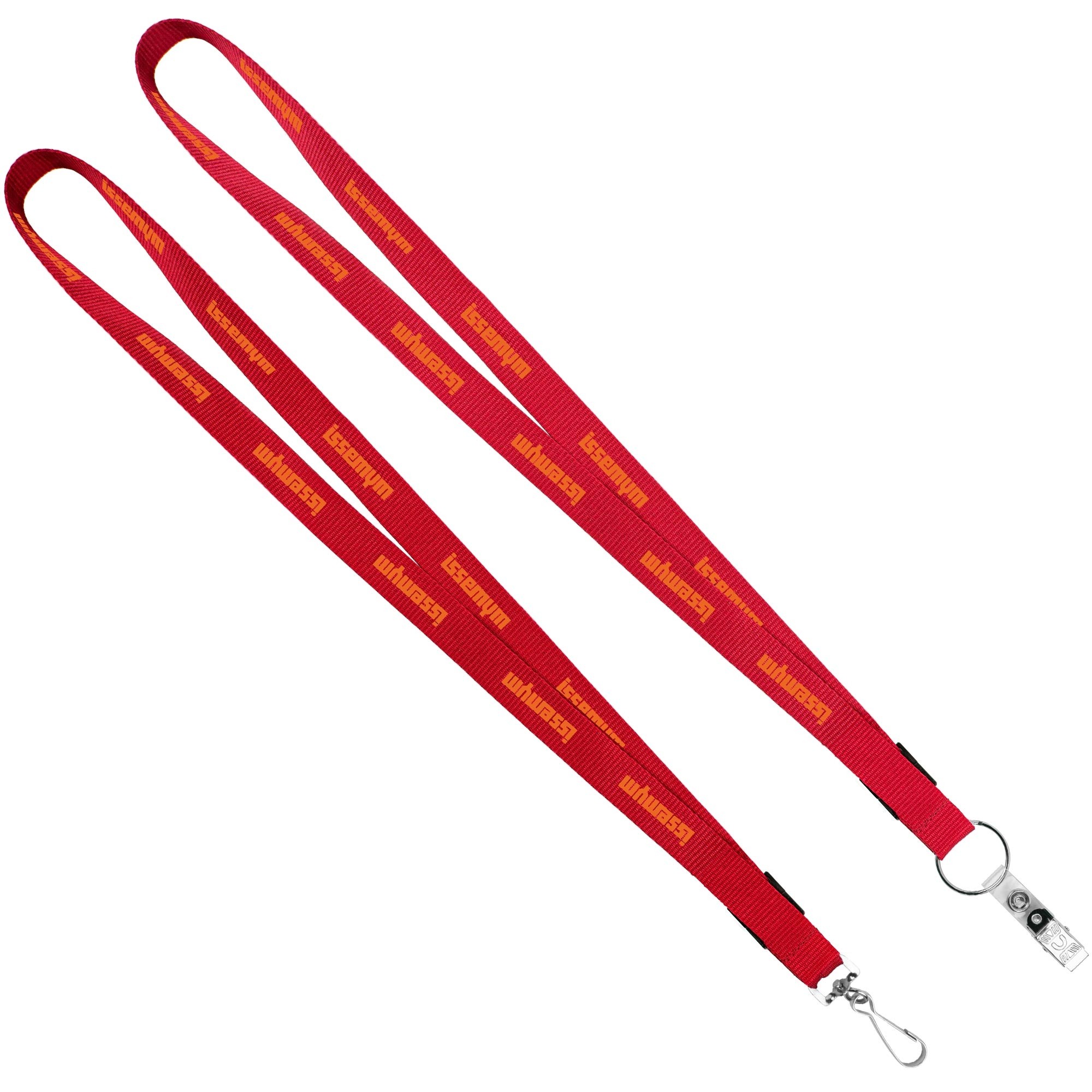 • A 3/4" wide polyester lanyard with either a metal J-Hook or Bulldog attachment and a split ring.